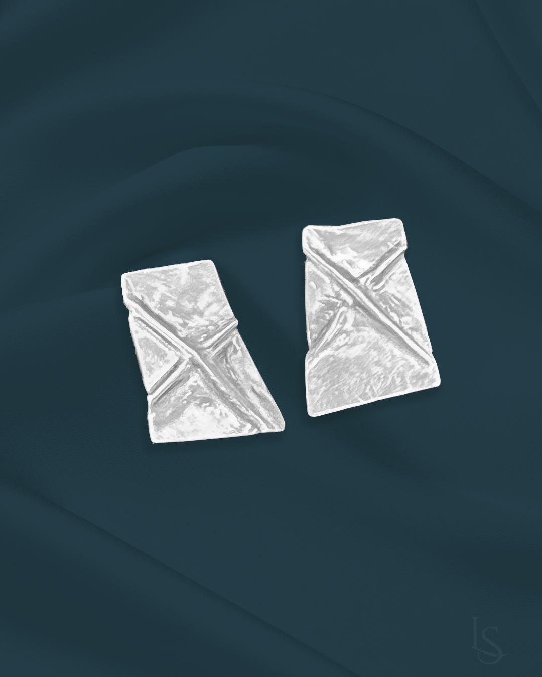Brinco confeccionado em Prata Pura (999,9), o que permite maior plasticidade e maleabilidade com a técnica Foldforming, que utiliza o fogo e instrumentos especiais, criando dobras e volumes. Joia única e exclusiva, feita à mão pela designer.