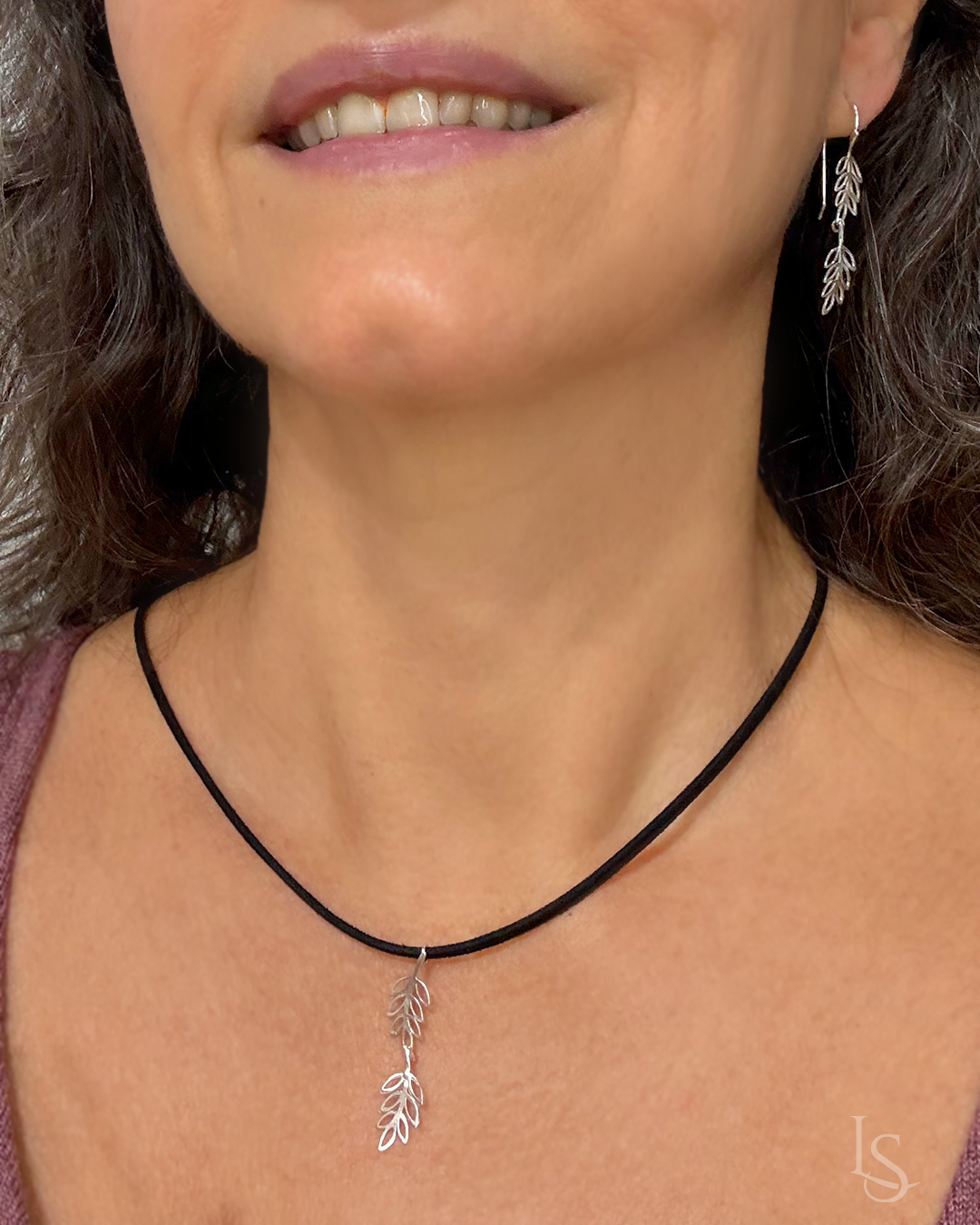 Cada joia é feita à mão, revelando galhos que brotam em prata e capturam o instante em que a luz toca a folha.