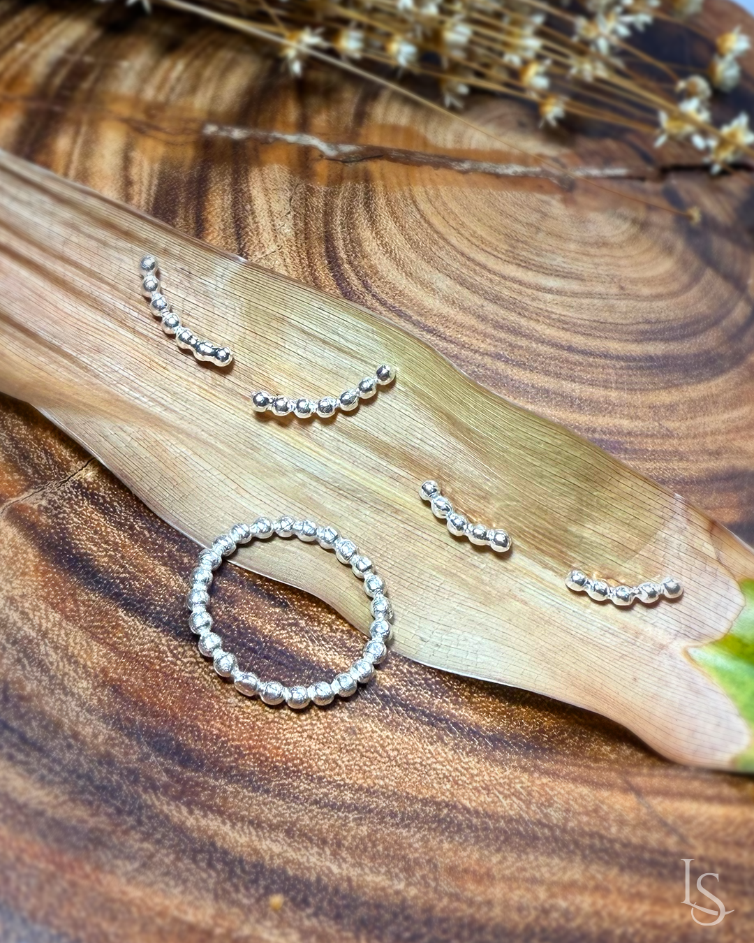 Brinco em prata 950, composto por 5 esferas, cada esfera se une à outra formando um movimento contínuo — como planetas que dançam em harmonia silenciosa.