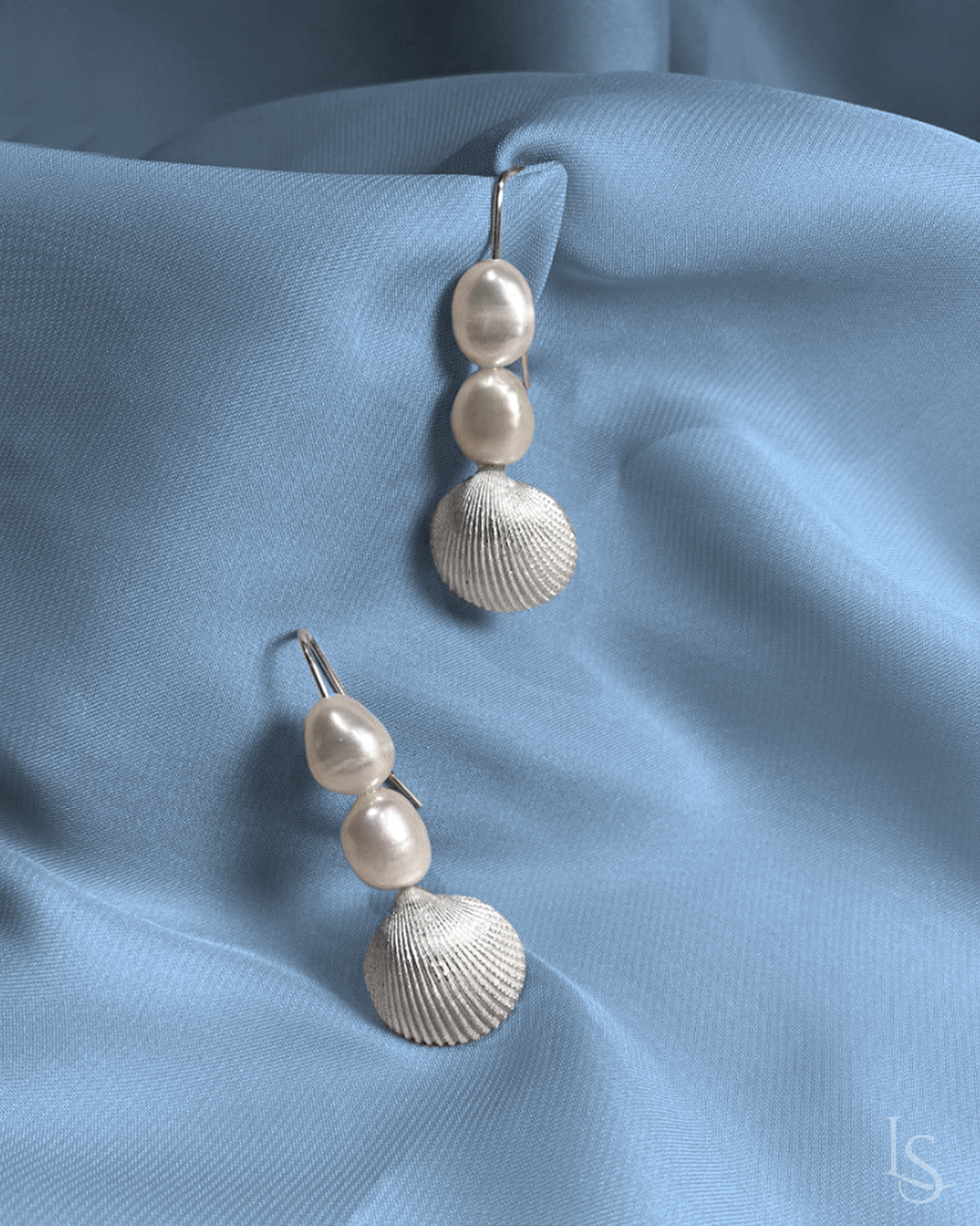 Inspirado na Concha Bivalve do Mar, os brincos, feitos artesanalmente em Prata 950 e Perolas compõem um look elegante e com muita presença.