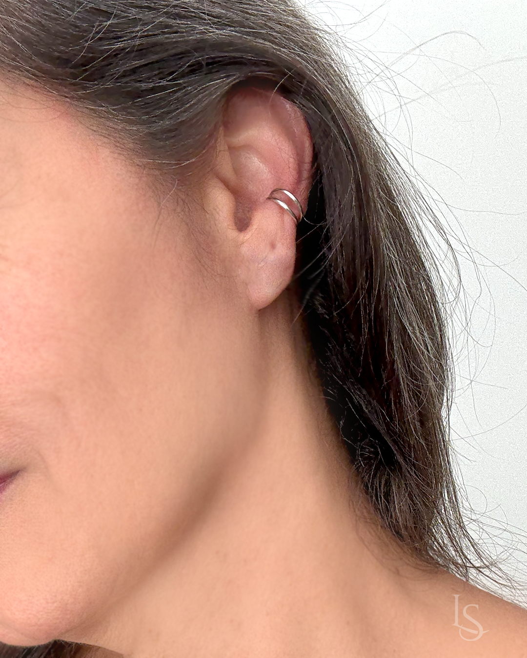 Brinco único em Prata Pura, ear cuff com duas argolas lisas. Joia única e diferenciada, desenhada e elaborada artesanalmente pela designer.