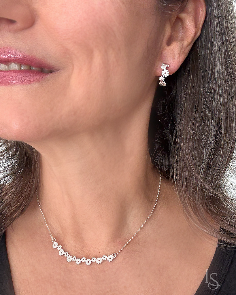 Colar Fleur de Lune são delicadas e pequenas flores em Prata 950 que refletem a delicadeza da luz lunar.